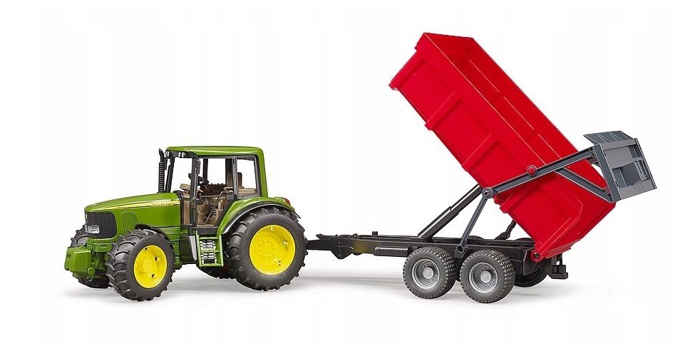 Ciągnik John Deere 6920 z przyczepą wywrotką marki BRUDER to realistycznie wykonany zestaw rolniczy w skali 1:16, stworzony z myślą o dzieciach, które interesują się maszynami rolniczymi i pracą na farmie. Model wiernie odwzorowuje wygląd i funkcjonalność prawdziwego ciągnika John Deere, oferując wiele ruchomych i interaktywnych elementów.