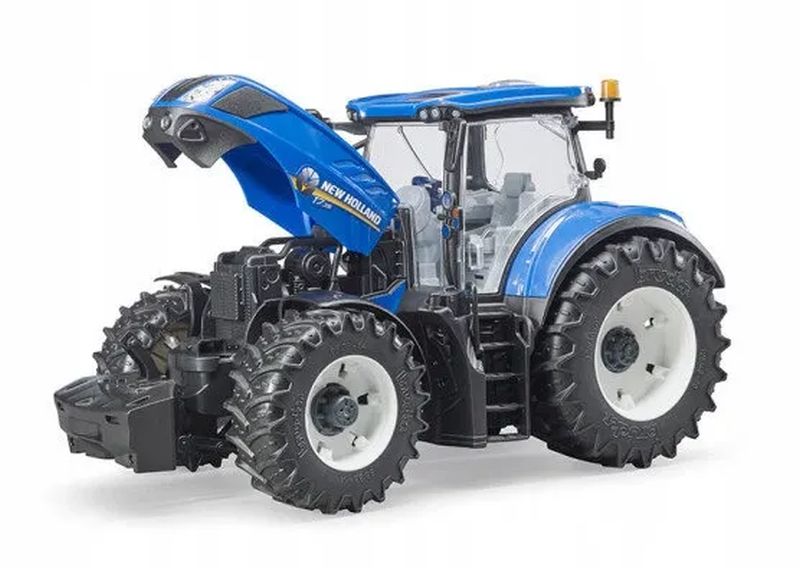 Ciągnik New Holland T7.315 marki BRUDER to realistycznie wykonany model z serii T7 Heavy Duty, przeznaczony do symulacji pracy z ciężkimi ładunkami i wymagającymi zadaniami rolniczymi. Miniatura została odwzorowana w skali 1:16, zachowując charakterystyczny wygląd, proporcje oraz funkcjonalność prawdziwego ciągnika New Holland.
