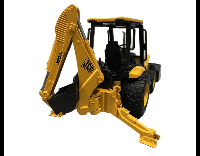 Koparko-ładowarka została wyposażona w w pełni funkcjonalną przednią szuflę ładunkową, którą można odłączyć, oraz odłączaną tylną jednostkę kopiącą, umożliwiającą realistyczne wykonywanie prac ziemnych. Składane podpory zapewniają stabilność podczas kopania, a amortyzowana oś dopasowuje się do nierównego terenu, zwiększając komfort i realizm zabawy.