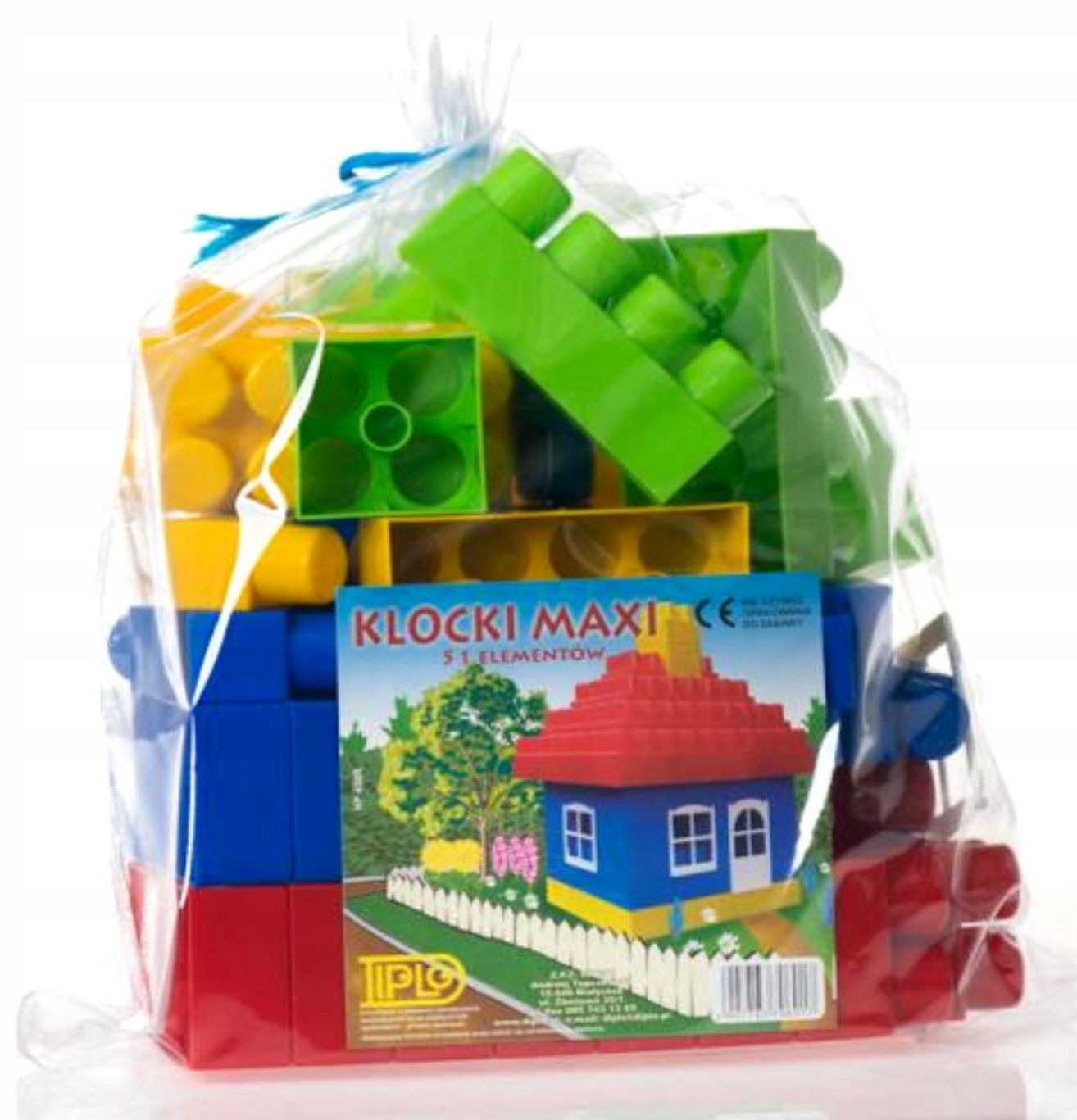 🔹 51 dużych klocków w różnych kolorach i kształtach.