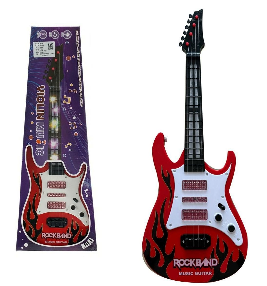 Elektryczna gitara ROCKBAND to idealna propozycja dla małych fanów muzyki, którzy marzą o własnej scenie i rockowych brzmieniach! Zabawka wygląda jak prawdziwa gitara elektryczna, ma 4 struny, wygodny gryf oraz świecące elementy, które dodają wyjątkowego koncertowego klimatu podczas zabawy.