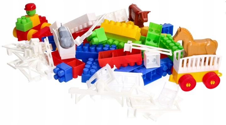 Ten wyjątkowy zestaw zawiera aż 120 dużych, kolorowych klocków konstrukcyjnych, umożliwiających dziecku zbudowanie własnej