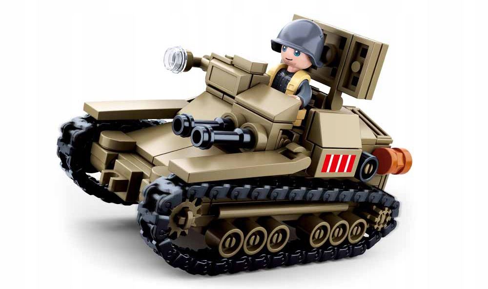 Zestaw klocków Sluban Army WWII to świetna propozycja dla dzieci, które lubią budować pojazdy i tworzyć własne scenariusze zabawy. Model przedstawia opancerzony pojazd gąsienicowy (czołg) w militarnym stylu, a w komplecie znajduje się 1 figurka żołnierza, dzięki czemu gotową konstrukcję można od razu wykorzystać w zabawie.