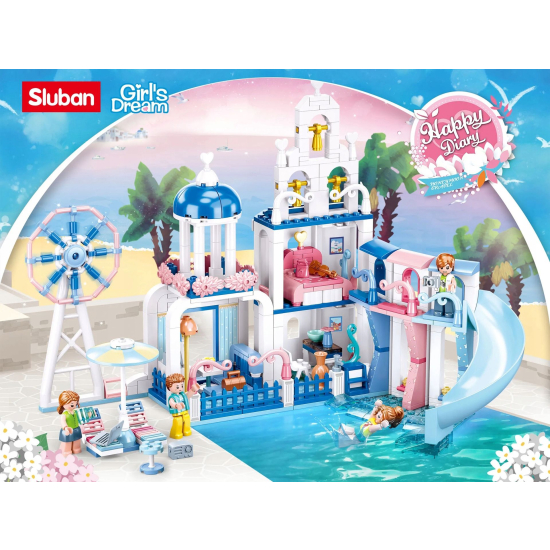 Zestaw klocków Sluban – kolorowy domek willa z basenem dla dzieci