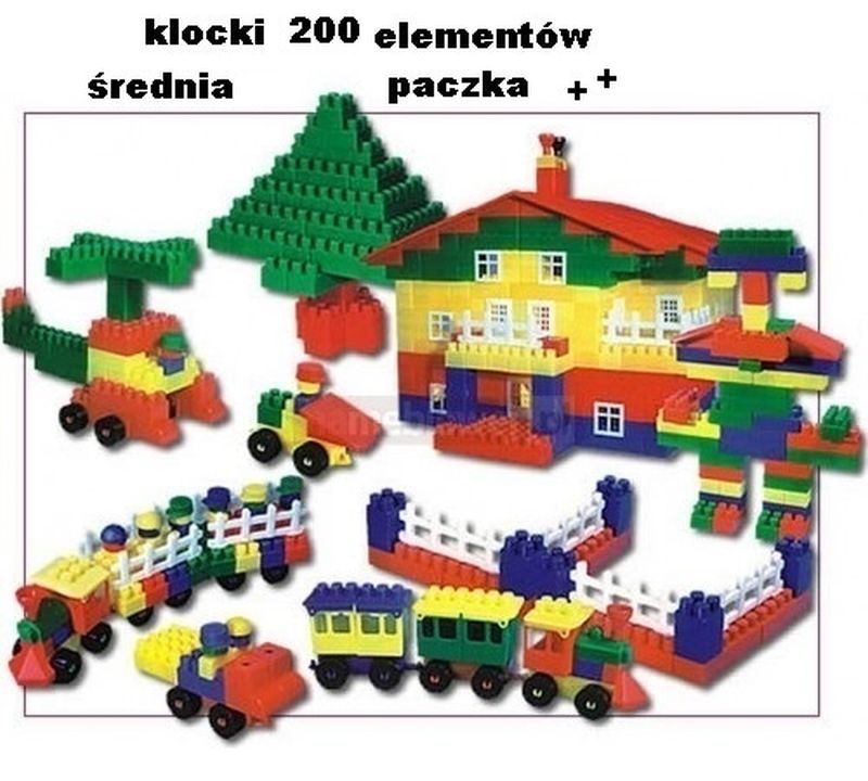 🔹 200 klocków konstrukcyjnych w różnych kolorach i kształtach.