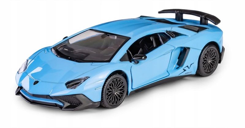 Model Lamborghini Aventador LP750-4 SV w kolorze niebieskim to dynamiczna miniatura jednego z najbardziej rozpoznawalnych supersamochodów świata. Wersja SV (Superveloce) łączy ekstremalne osiągi z agresywną stylistyką, która została wiernie odwzorowana w skali 1:36 przez markę RMZ City.