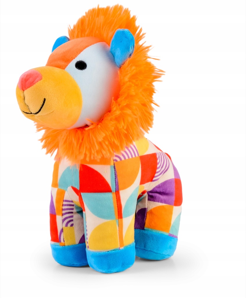 Maskotka wykonana jest z wysokiej jakości, przyjemnych w dotyku materiałów, które charakteryzują się elastycznością i odpornością na odkształcenia. Dzięki temu pluszowy lew zachowuje swój kształt nawet przy intensywnym użytkowaniu. Kolorowe elementy materiału oraz kontrastowe wzory przyciągają uwagę dziecka, wspierając rozwój zmysłu wzroku oraz koordynacji wzrokowo-ruchowej.