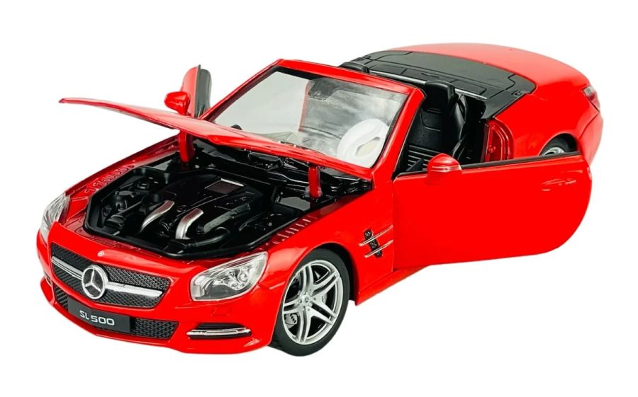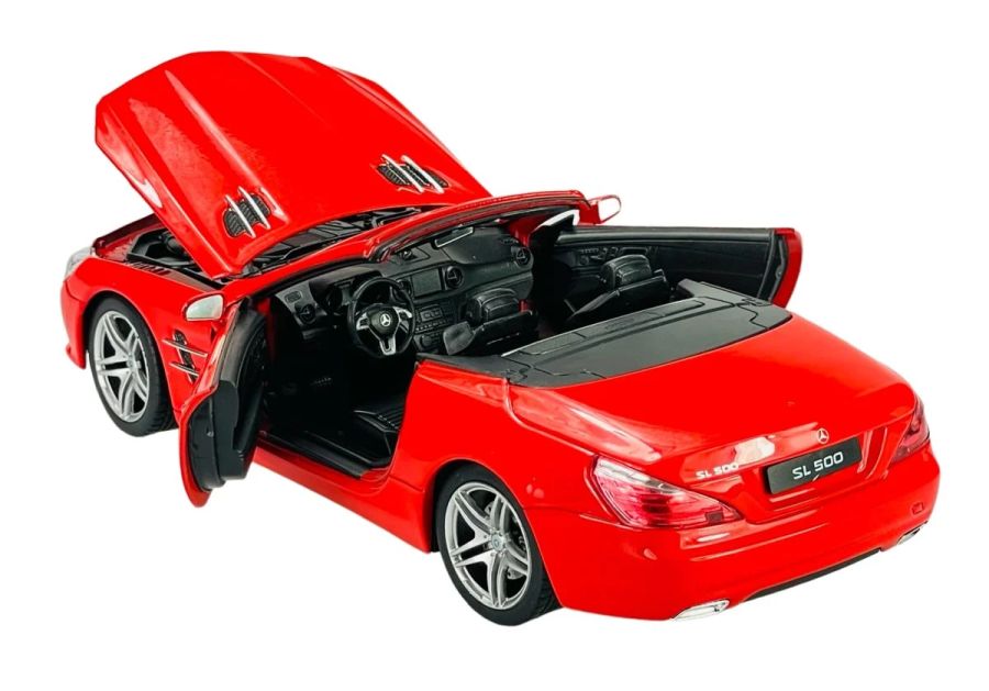 Model został wykonany z metalu z dodatkiem elementów plastikowych oraz gumowych opon, co zapewnia realistyczny wygląd i trwałość. Posiada ruchome elementy, takie jak otwierane drzwi, maska oraz skrętne koła, dzięki czemu doskonale sprawdzi się zarówno jako model kolekcjonerski, jak i atrakcyjna zabawka. Intensywny czerwony kolor oraz elegancka linia nadwozia idealnie oddają charakter luksusowego kabrioletu Mercedes-Benz.