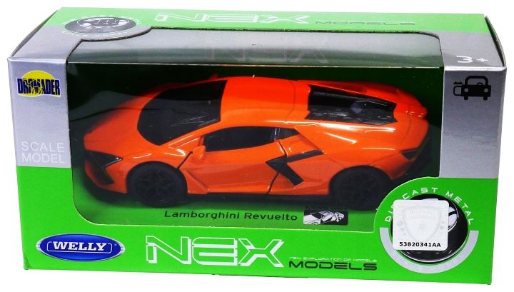 Model metalowy Lamborghini Revuelto marki Welly z serii NEX Models to doskonała propozycja dla kolekcjonerów oraz miłośników motoryzacji. Precyzyjnie odwzorowane detale, sportowa sylwetka oraz charakterystyczny, intensywnie pomarańczowy kolor sprawiają, że model przyciąga uwagę i świetnie prezentuje się na półce.