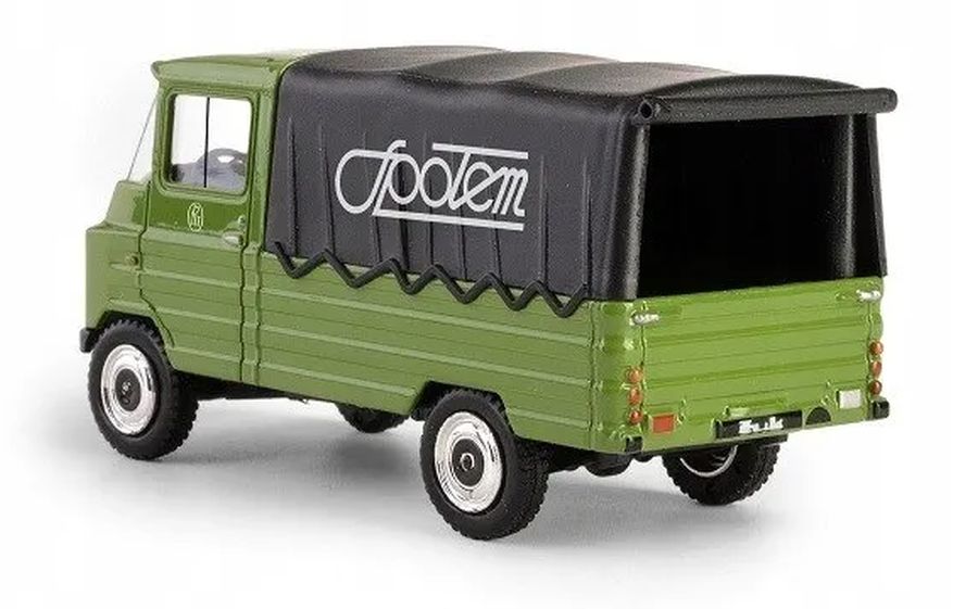 Model Żuk A11 Społem w klasycznym zielonym kolorze to wyjątkowa miniatura nawiązująca do kultowych samochodów dostawczych z czasów PRL. Wersja z charakterystycznym logo „Społem” na czarnej plandece oddaje klimat epoki i doskonale wpisuje się w kolekcję pojazdów historycznych.