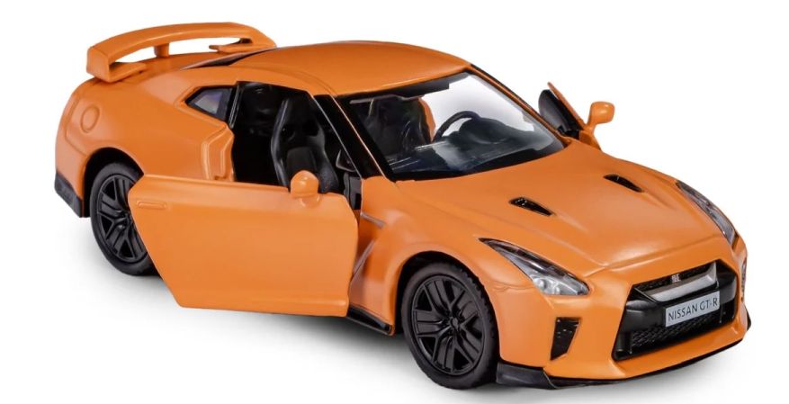 Model Nissan GT-R R35 w intensywnym pomarańczowym kolorze to dynamiczna miniatura jednego z najbardziej kultowych japońskich samochodów sportowych. Wykonany w skali 1:38 przez markę RMZ City, łączy sportowy charakter, wysoką jakość wykonania oraz funkcjonalność, która sprawdzi się zarówno podczas zabawy, jak i w kolekcji.