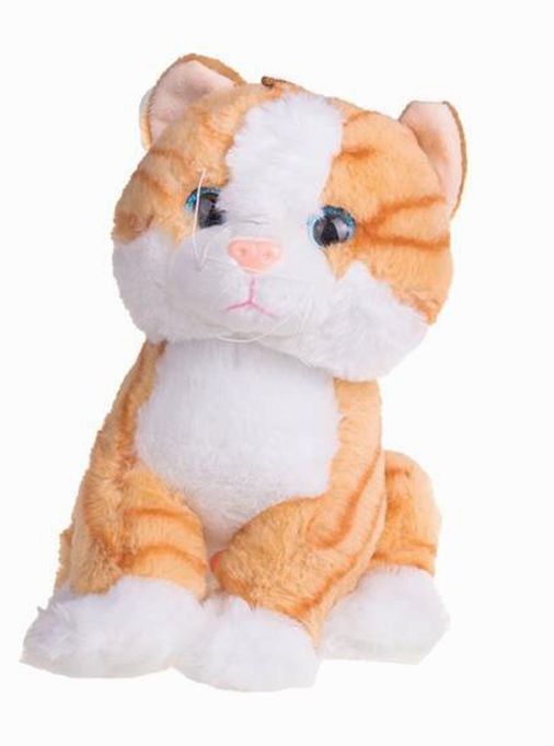 Uroczy, mięciutki kotek pręgowany to idealny towarzysz zabaw i snu dla dzieci w każdym wieku. Wykonany z delikatnego, przyjemnego w dotyku materiału pluszowego, zachwyca swoim realistycznym wyglądem i dużymi oczami. Posiada charakterystyczne, rude prążki oraz białe elementy na pyszczku, brzuszku i łapkach.