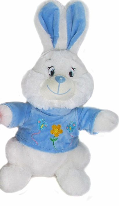 Uroczy pluszowy zajączek 30 cm w niebieskiej bluzce to idealna przytulanka dla każdego dziecka. Miękki, delikatny w dotyku materiał oraz sympatyczny uśmiech sprawiają, że maskotka szybko stanie się najlepszym towarzyszem codziennych zabaw i zasypiania.