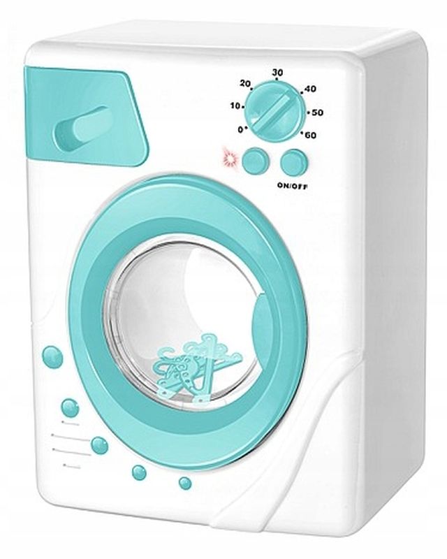 Po włączeniu urządzenia bęben zaczyna się obracać, a pralka wydaje charakterystyczne dźwięki prania. Otwierane drzwiczki, wysuwana komora na detergenty oraz ruchome pokrętło do ustawiania temperatury sprawiają, że zabawa jest niezwykle realistyczna. Dodatkowo podczas pracy zapala się czerwona dioda, imitująca działanie prawdziwego sprzętu AGD.