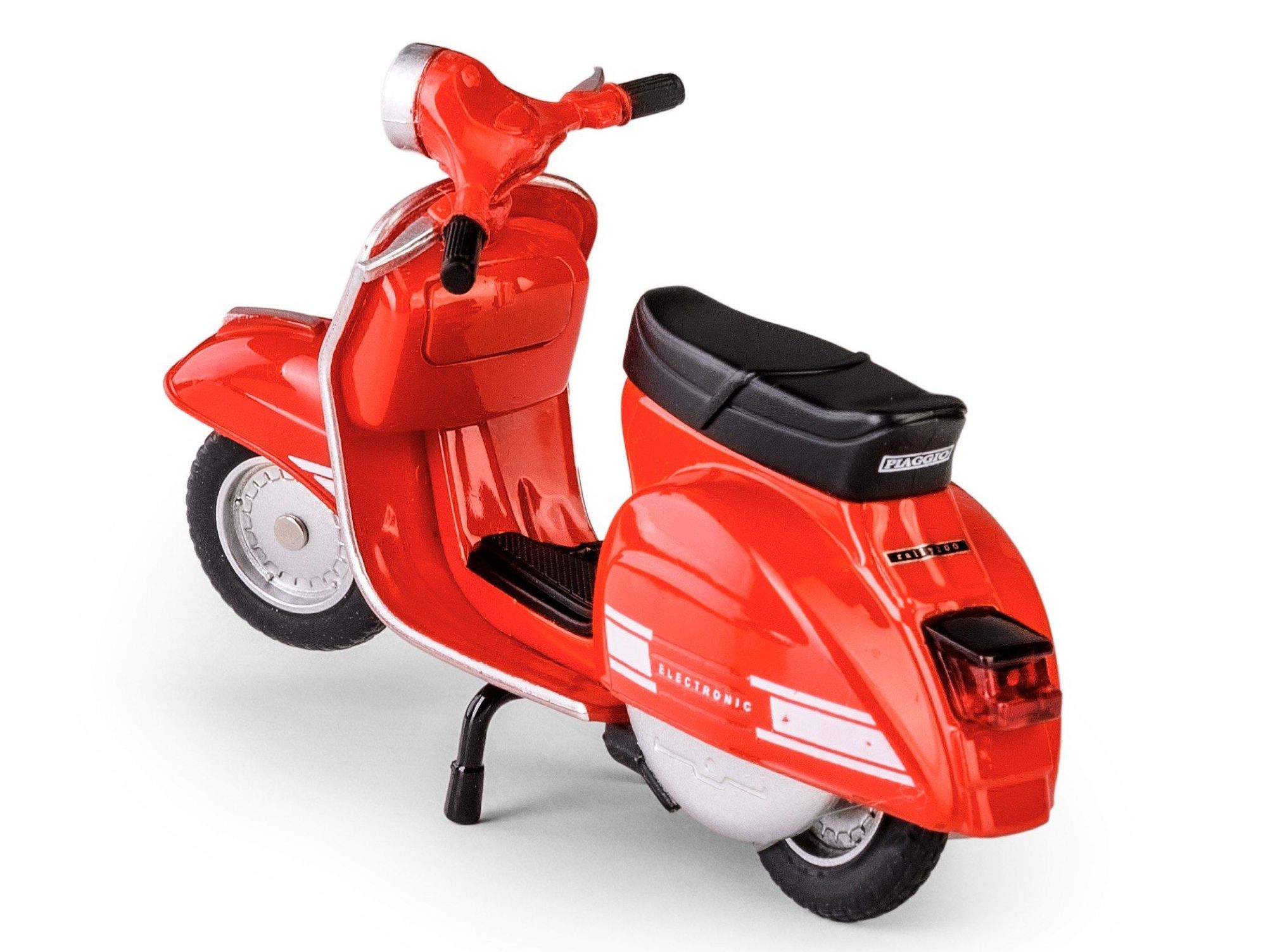 Model Vespa 200 Rally z 1976 roku w skali 1:18 to wierna replika kultowego włoskiego skutera, który do dziś jest ikoną stylu i miejskiej motoryzacji. Klasyczna sylwetka, intensywny czerwony kolor oraz charakterystyczne detale sprawiają, że model prezentuje się bardzo realistycznie i od razu przyciąga wzrok.