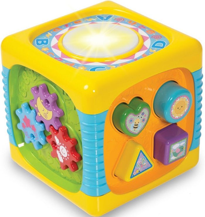 Kostka stymuluje wzrok, słuch i dotyk. Żywe kolory, migające światełka oraz wesołe melodie naturalnie zachęcają do zabawy. Różnorodne elementy do kręcenia, przesuwania i naciskania pomagają ćwiczyć małe rączki i koordynację.