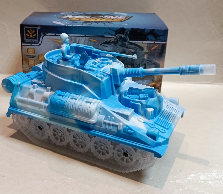 Czołg po włączeniu jeździ-odbija się od przeszkody,wydaje ciekawe efekty świetlne i dźwiękowe (dźwięki walki i odgłosy czołgu)